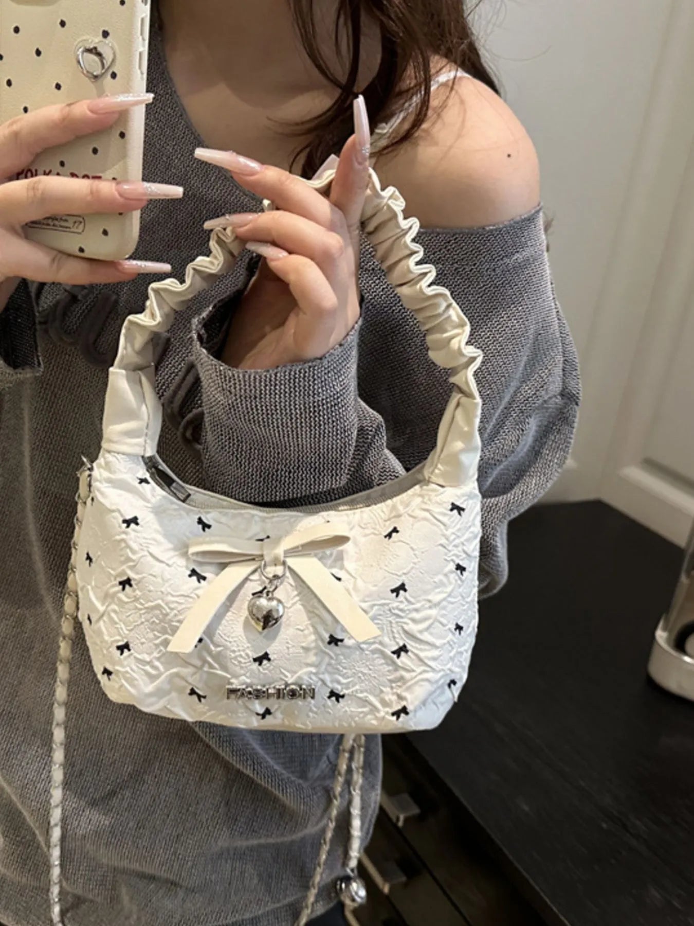 Bow Ruched Strap Crossbody Bag