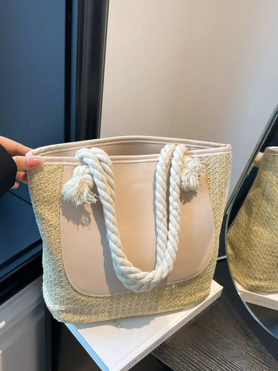 Bag size:Medium Material:Polyester,Straw Imported Product Measurements (Measurements by inches) & Size Conversion Size Actual Height Actual Width Actual Length One Size 9.8 3.9 10.2