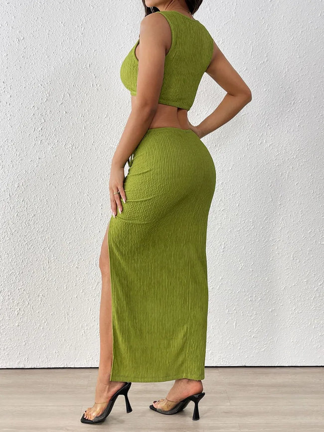 Perfee Texture Cropped Tank and Ruched Skirt Set