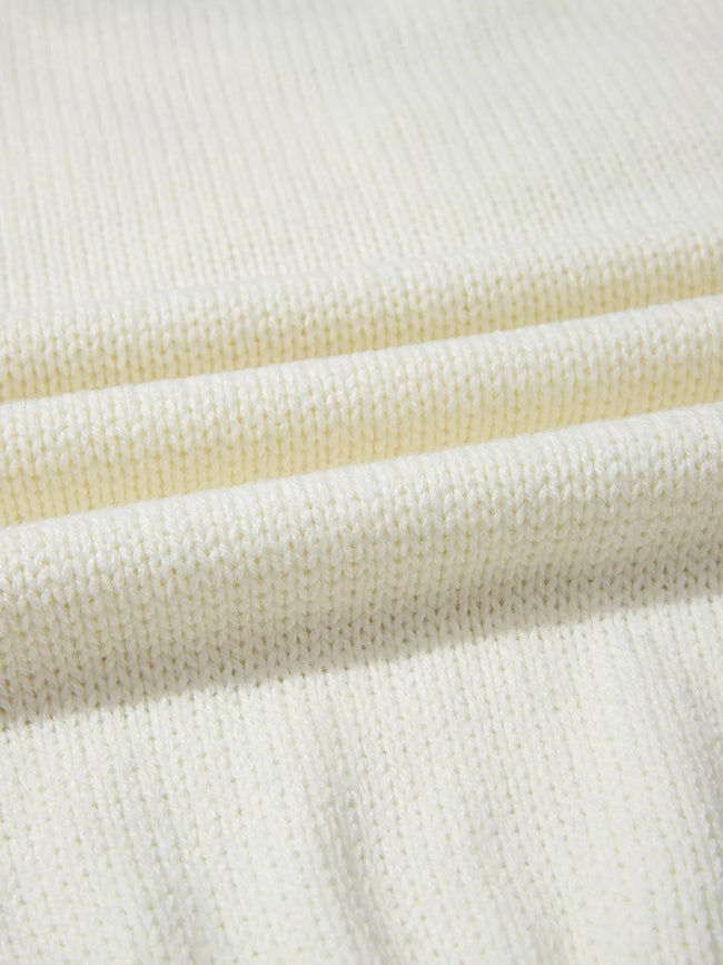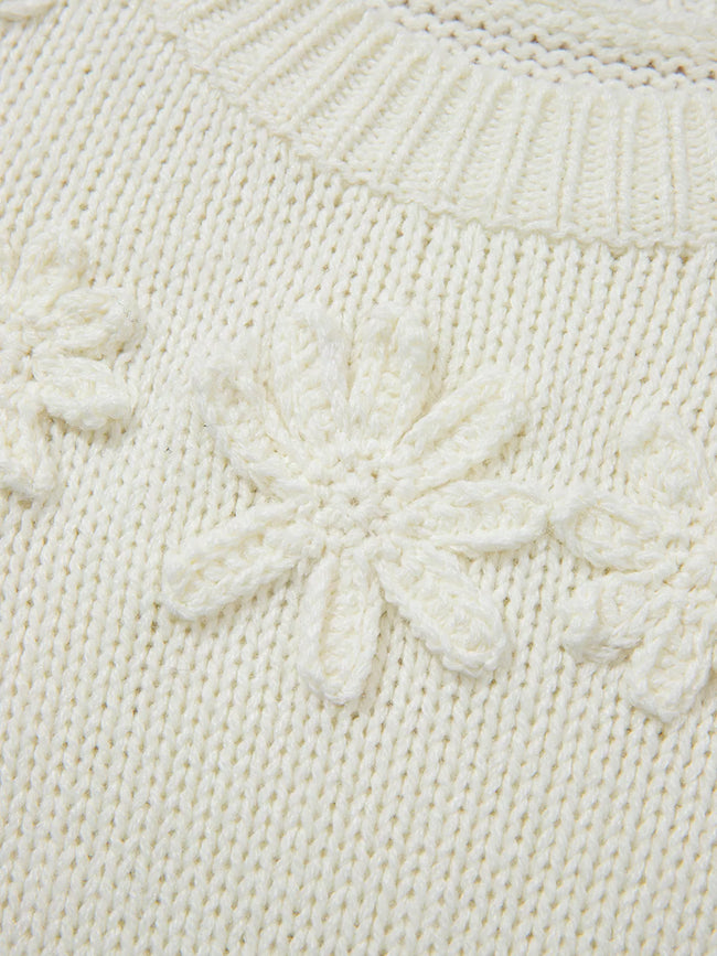 Flower Detail Round Neck Contrast Textured Puff Sleeve Sweater
