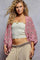 POL Openwork V-Neck Chenille Cardigan with Contrast Floral