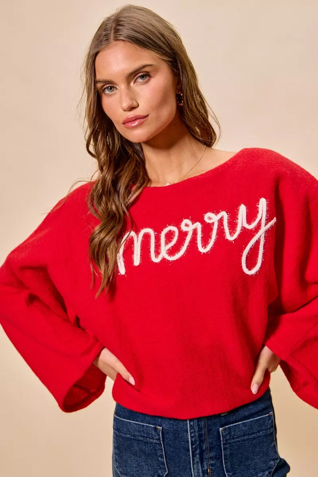 SO ME Merry Tinsel Lettering Christmas Sweater Top