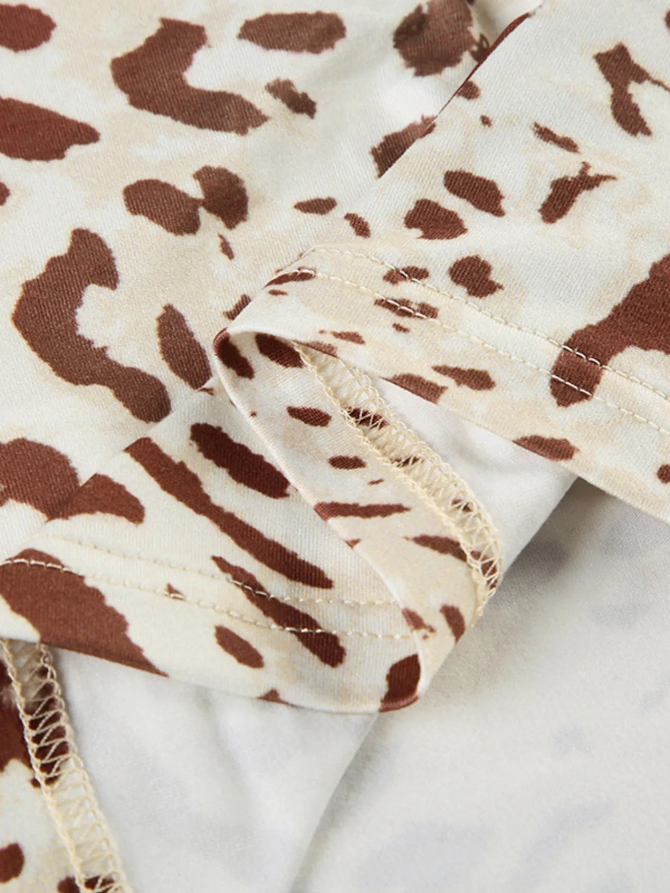 Leopard Print Strapless Top and Skirt Two-Piece Set
