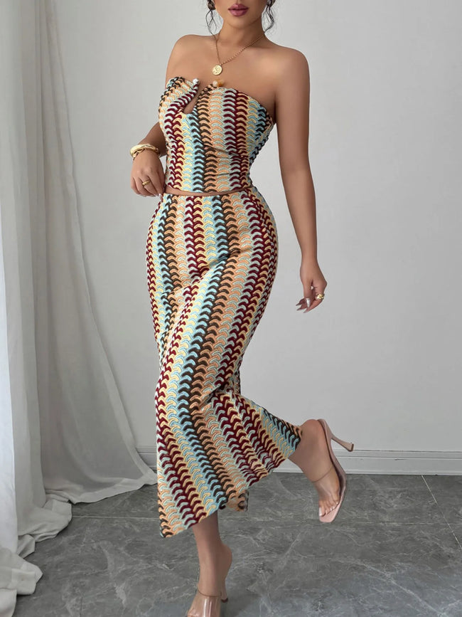 Printed Tube Top and Skirts Set
